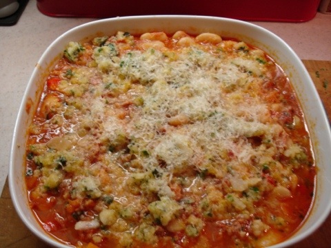 Bake in the oven for 10 mins (or 40 if you used the dried beans), until a lovely crusty top from the Parmesan forms.