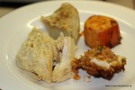 I went to gymnastics today, the first class in quite a while and I’m already feeling the effects. My legs are jelly and my arms are starting to feel it after lots of handstand turns… and falls. I like it thought, reminds me that my body can still work hard,When you think of when you were little and could do handstands all day and not feel any pain! So I need something comforting and I immediately think of roast chicken, the easiest meal to get in the oven and nothing like it, soft juicy flesh, and full of flavour if you have the right bird. I had a corn fed free range chicken, more expensive than the usual but twice the size and doesn’t shrink during cooking. Stuffed with a mediterannean style stuffing, some fondant sweet potato and fennel parmigiana, just the job for a sore body…