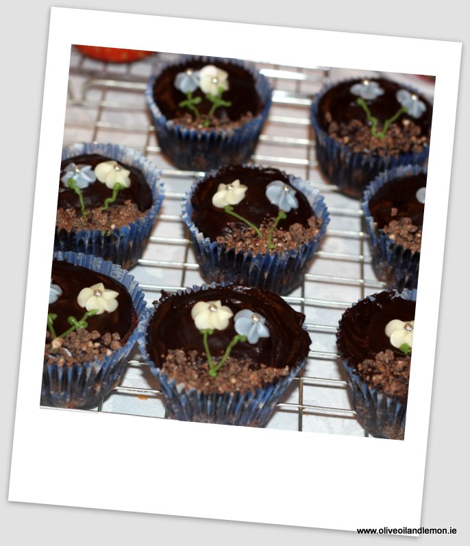 Dark Chocolate ganache with chocolate soil (Thanks Heston!) .. decorated with flowers to resemble a garden