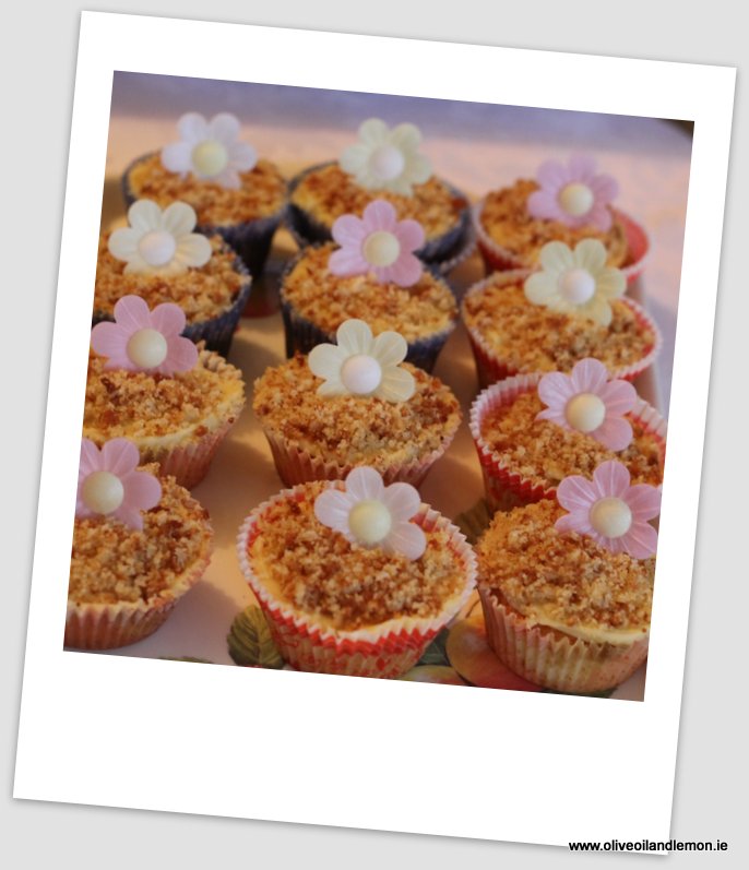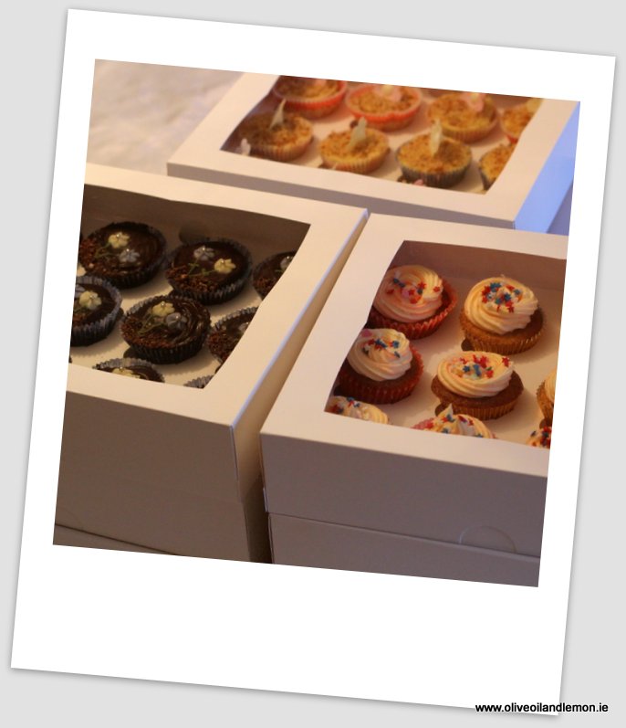 So I spent the day baking for a party. It’s my sisters birthday – a special one and she is having a party. I’m one of 5 girls (there is also a boy) so it will be lots of glamour and I’m sure lots of fun. No glamour today though just lots of baking and lots of Springsteen on the iPod!. I started at 9am and finished this afternoon. Results :- 7 doz various cupcakes and the same in Marcaroons… I know she will appreciate them , I just hope everyone likes the flavours. I’m not going to post the recipes as there are a million cupcake receipes out there, all of which are perfectly good. The one I used today is from the Hummingbird café just because I really like the book, simple recipes and great pictures. The macaroon recipe is the classic Pierre Hermes one but without liquefying egg whites simply because I didn’t fancy having them in the fridge for that long with the risk of picking up fridgy smells. I had also bought lovely gold and silver foil cupcake cases to bake them all in. Very pretty to look at, but my first 3 batches of cakes did not rise properly; I had a hole in the centre of each of them. Suspecting the foil cases, I switched to regular paper and sure enough they were perfect. I don’t know the science, if any, behind this but I have made a million cup cakes before and this has not happened since I was 7 so I’m blaming the foil cases!