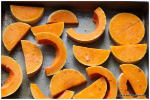 Sprinkle the pinches of sumac over the squash and cook in the oven until tender