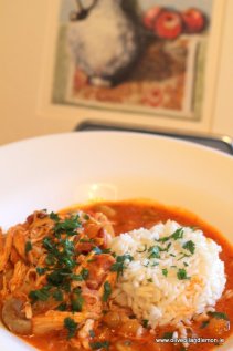 At the last minute sprinkle in the flat leaf parsley and serve with your choice of rice or other vegetable