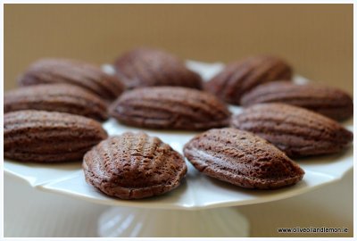 Butter the madeleine tin with some softened butter and sprinkle with cocoa powder, tap and shake around to spread out and bang out any excess.