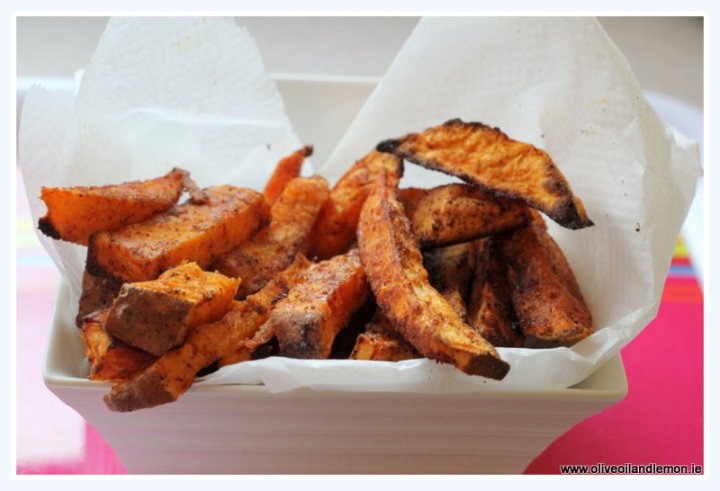 Sweet Potatoes and Paprika, the sweet kind, delicious sweet smokey condiment to spice up this already delicious vegetable. Simplicity itself to prepare and difficult to stop eating once done. This isn’t even worth calling a recipe but definitely worth posting. I always cut them skinny and leave some skin on, after a good scrub. I just add a teaspoon or 2 of sweet paprika with some roasting oil in a bowl and throw in the cut potatoe and give it a good mix and then season.
