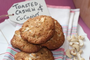 Cookies not curry although these two ingredients together are usually associated with a curry. In this case they make a delicious creamy richness to these American style cookies. Not overly sweet and gluten free too for those with an intolerance. Great energy boosting ingredients – Cashews, egg, coconut and not too much sugar making this a low damage treat!