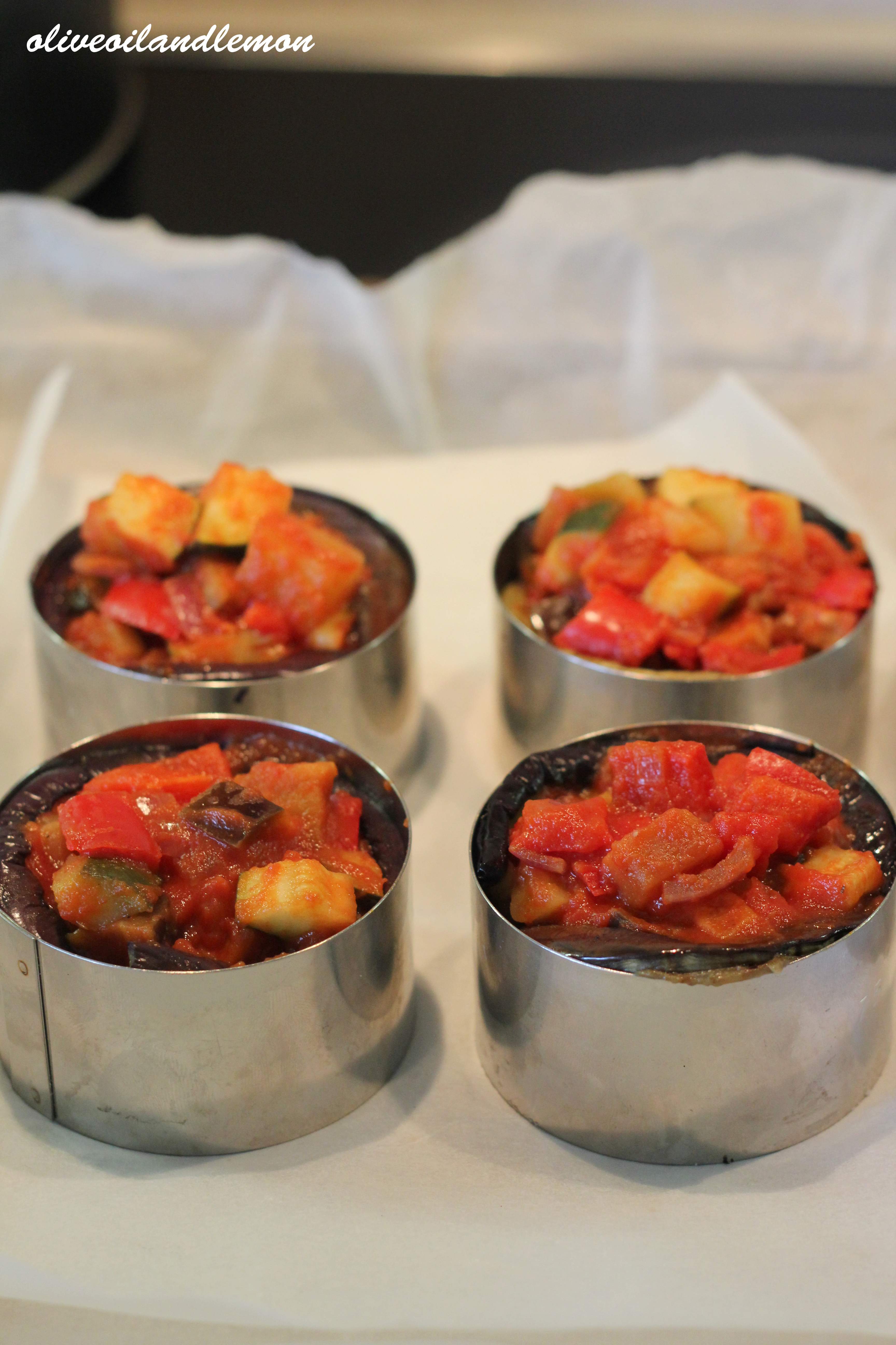 Ratatouille Vegetable stacks with goats cheese and crumb topping
