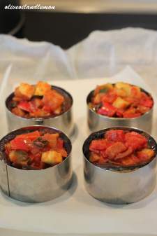Fill with the ratatouille mix and place a further circle on top and press down firmly