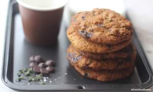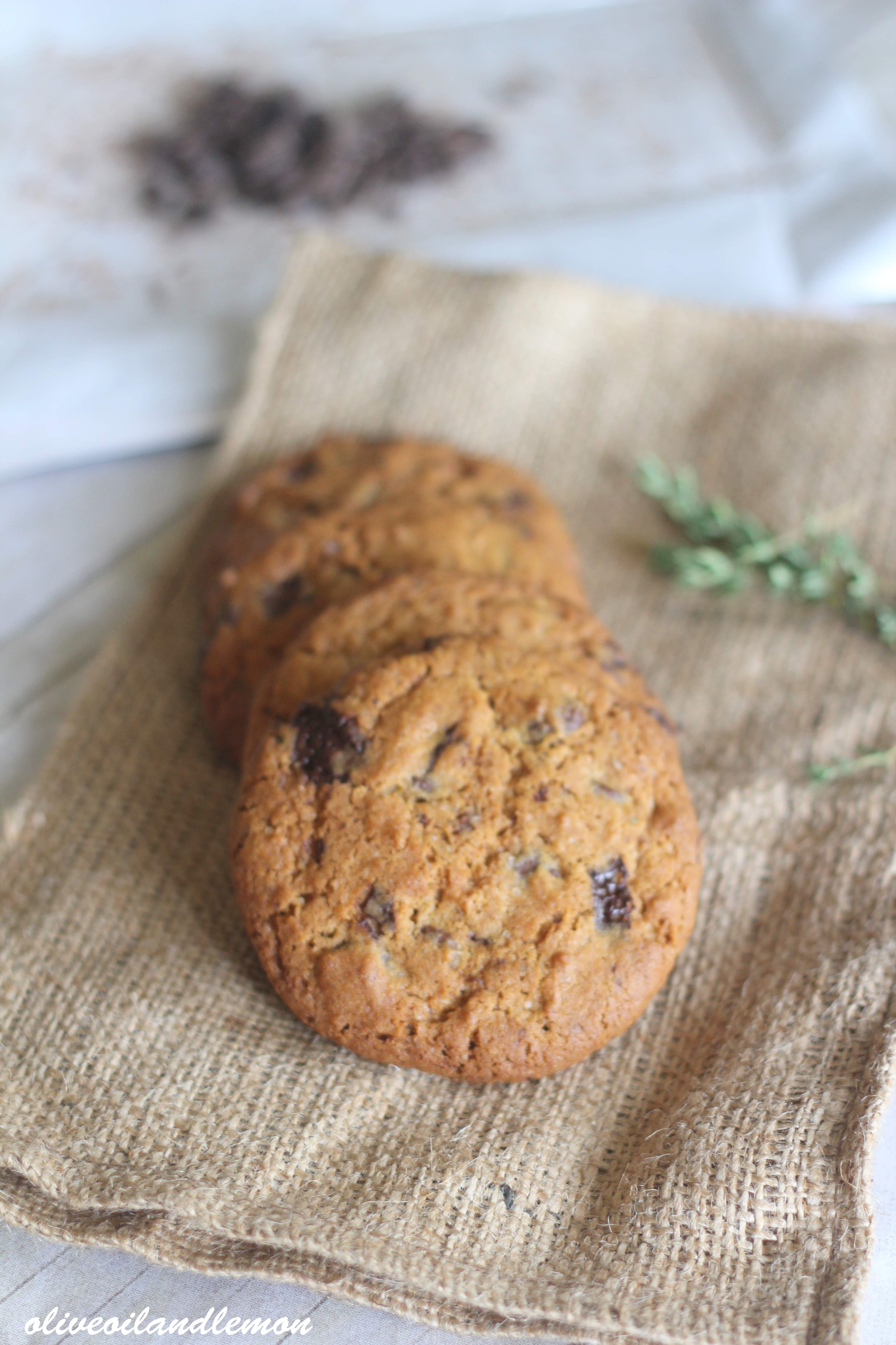 In the meantime read on for my recipe for Chocolate Chip Cookies, with Sea Salt and Thyme so not your ordinary cookies but delicious with a strong espresso or a nice cup of tea!. Gerard Coleman of artisan du chocolate makes his salted caramels with flavors like these so I have based these on the same idea. I think the thyme works really well and imparts kind of almost nutty flavor – the outside of these end up slightly crisp but the inside are gooey chocolate – delicious dark chocolate and just a taste of salt – on paper might seem strange, but delicious in reality.