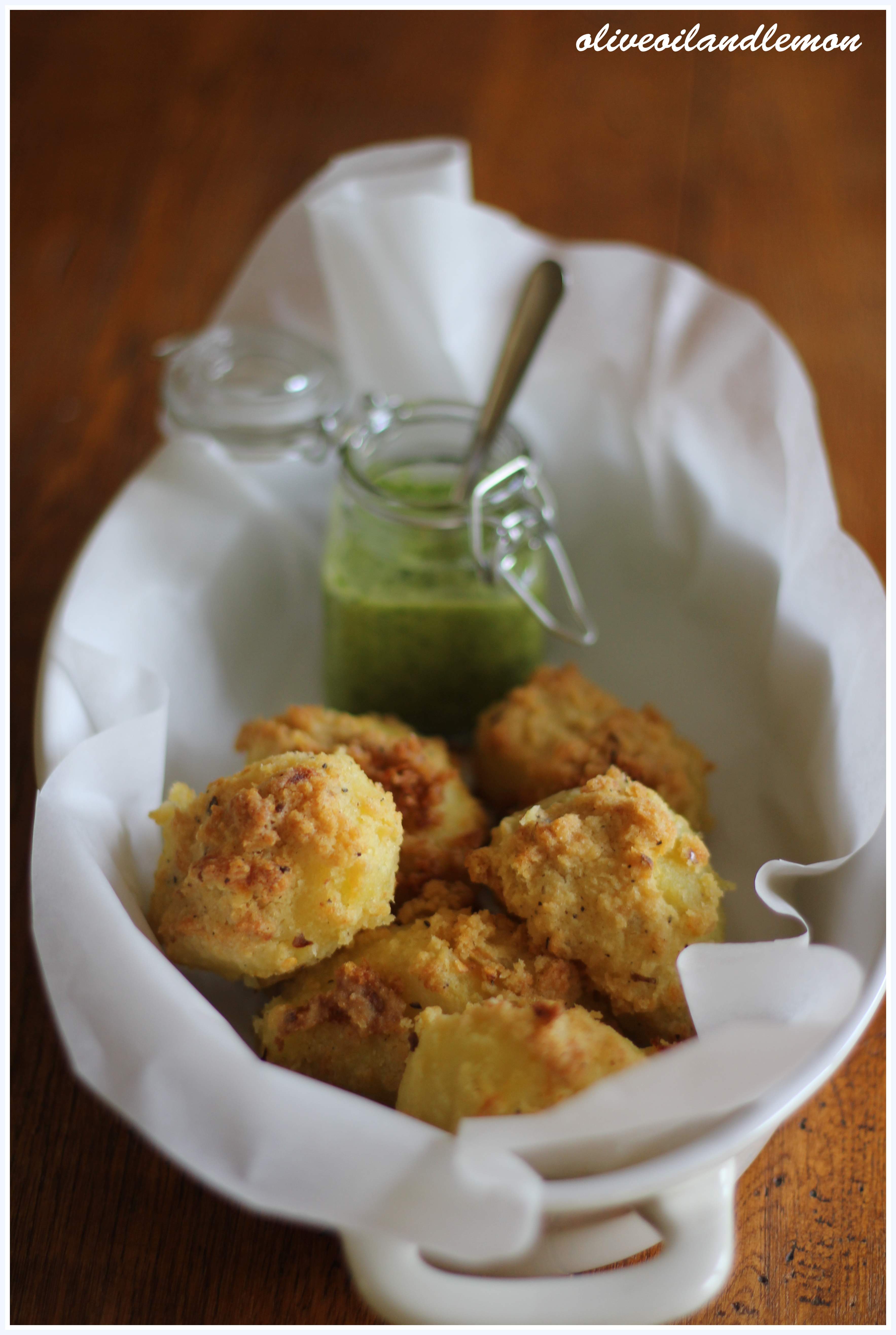 These veggies have a delicious spicy crispy coating and the herb sauce is the perfect counterfoil to the heat. Polenta or Semolina flour with dried chili flakes to coat the vegetables adds a delicious crumb and roasted off in the oven these are amazingly moreish. A platter full of these disappear very quickly.