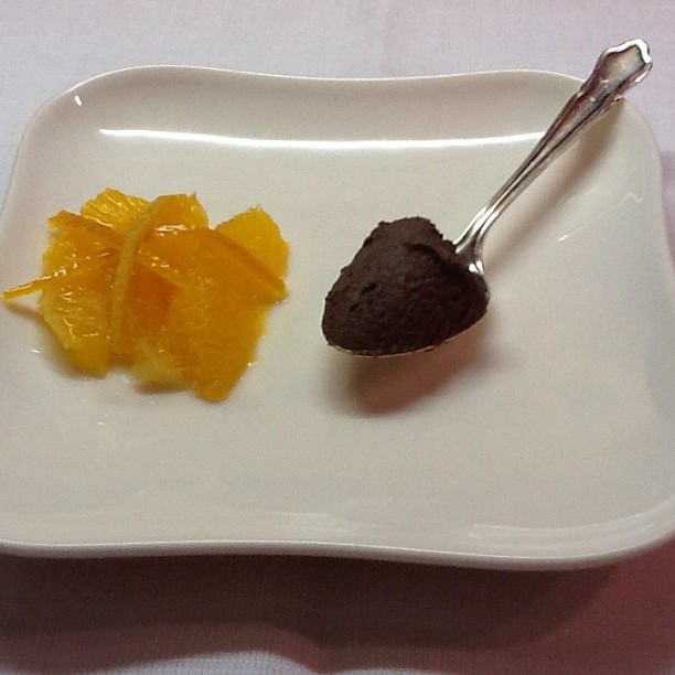 I used 80% solids for this one and I think that it would be even better with a less bitter chocolate to be a bit less dense and dark. Served with orange slices and zest to cut through the bitter chocolate solids and all in all its a delicious decadent dessert.