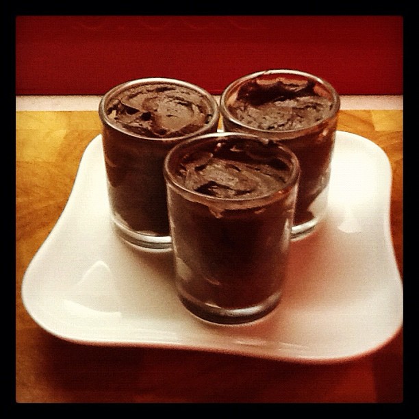 I do like Mark Bittman who writes in the NY times and he has always raved about a chocolate pudding made with Tofu. Now I have to say, I just don’t get Tofu, tasteless at best, slightly sour at worst, definitely a bit slimy and all in all represents a set of adjectives you shouldn’t have to use when describing a food. However, I like this fellow, so felt this one probably was worth trying. So, I made it, thought about it and then felt that it could be turned from a pudding into a mousse with the addition of some folded whipped cream. (Read between the lines, I think I improved it!)