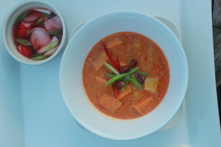 This isn’t so much a recipe, more a oh I fancy something spicy, hot and sour. Paired with some pickle because there is nothing better with Thai food…..anyway the resulting bowl of soup was so good I had to share. Great texture, lovely flavour and a good bang of heat.