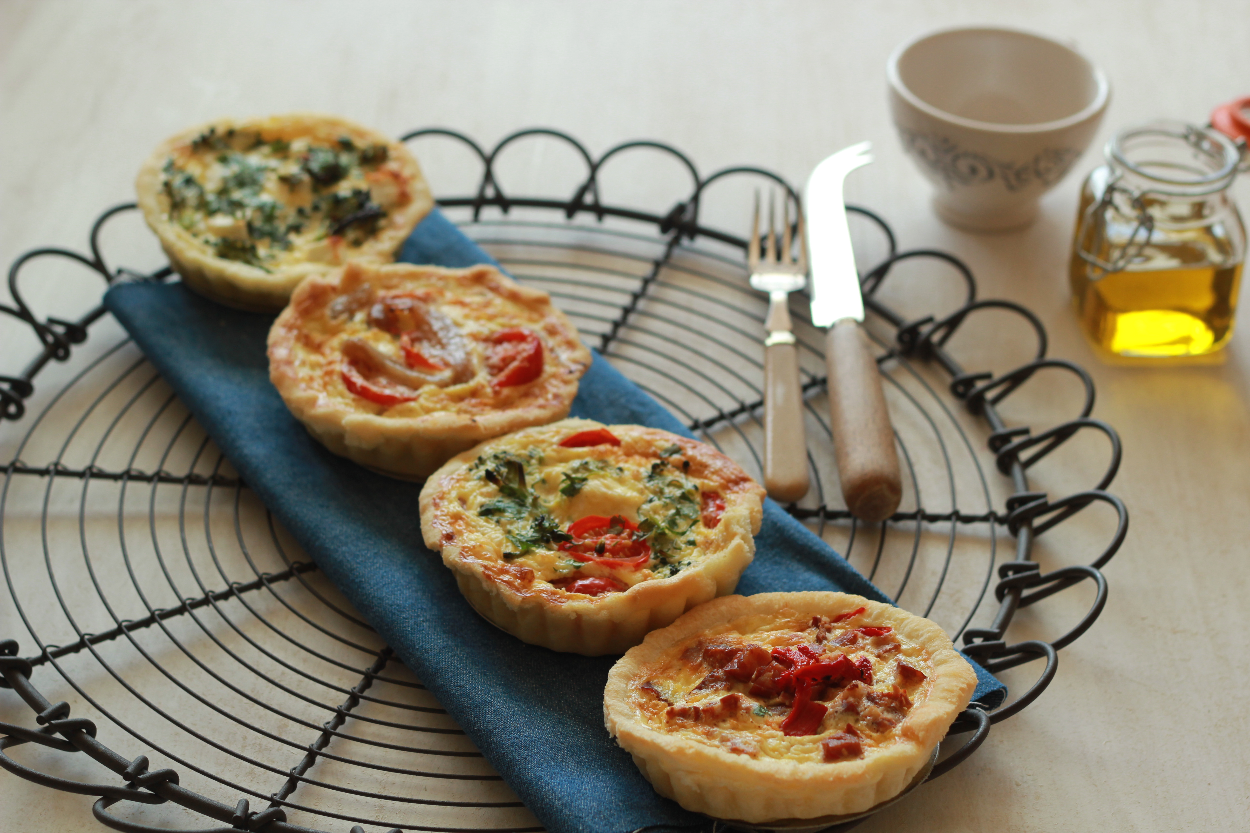 This makes about 4 mini quiches – fill with parchment beans and blind bake for about 7 minutes.