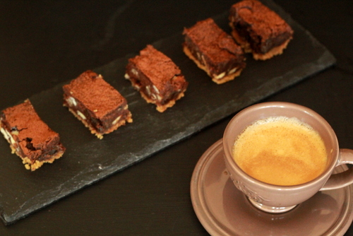 Serve with a good coffee- a small piece is enough as it is really rich (my other half completely disagrees!)