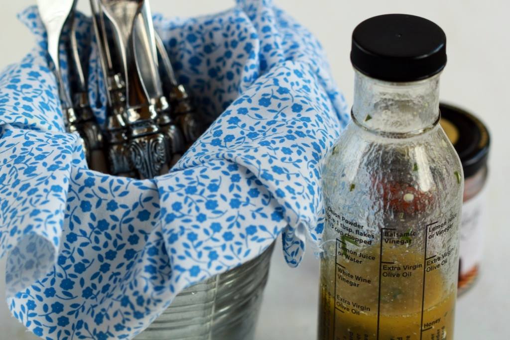 Chop the garlic, capers, anchovies and herbs and put them into a bowl. Add the mustard and vinegar, then slowly stir in the olive oil. Whisk in the red pepper jelly then check seasoning and add salt and pepper as needed.