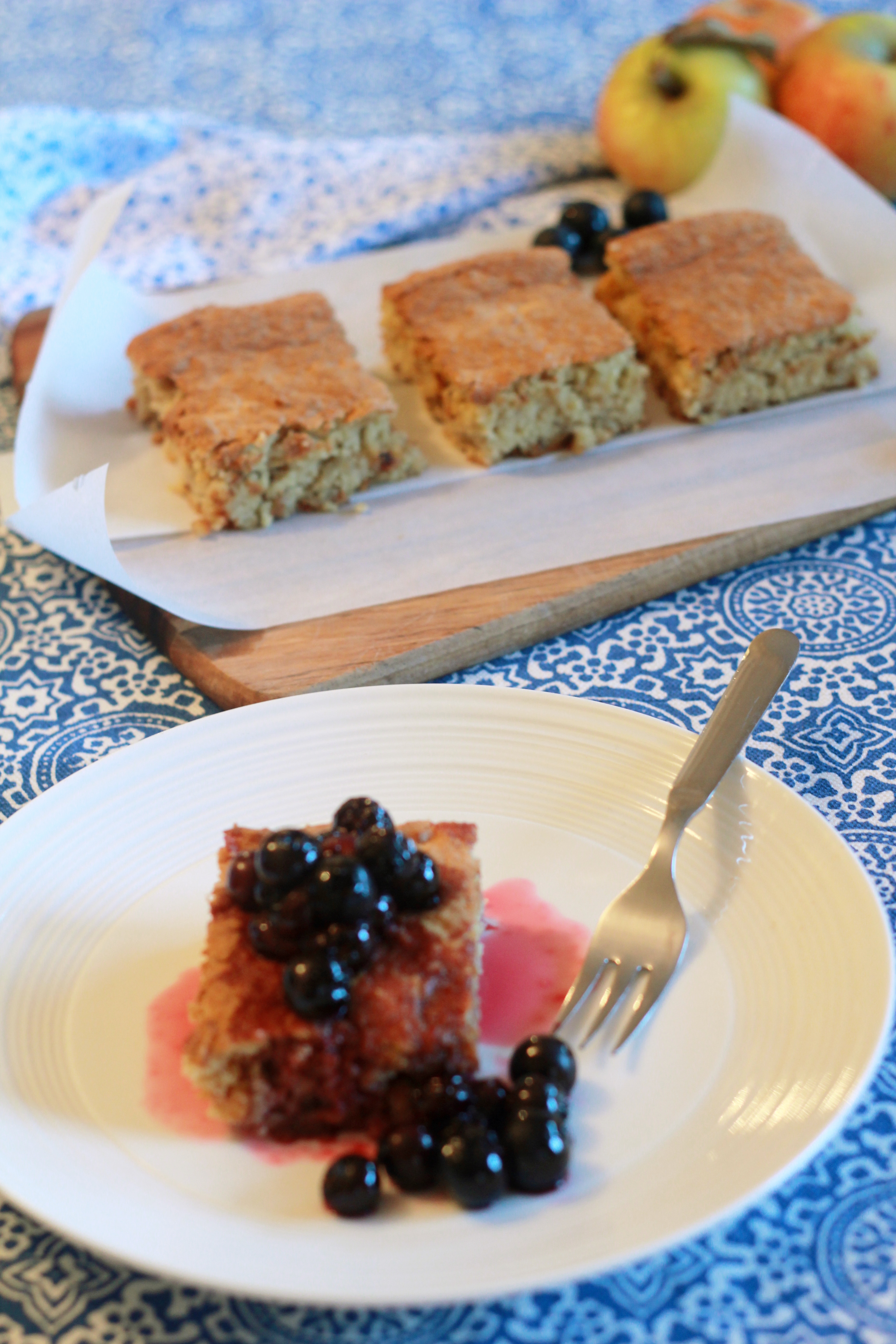 Apple and Almond Tray Bake with Glazed Blurberries